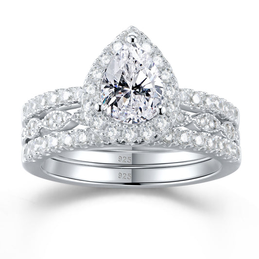 Zircon Ring Set: 925 Sterling Silver Engagement Rings 3PCS 🚚