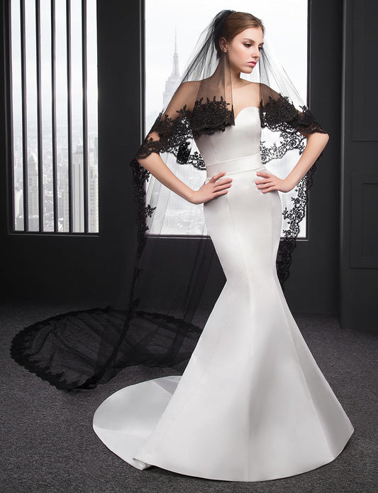 Cathedral Lace Black Wedding Veil
